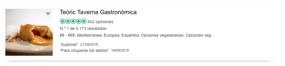 Aunque hace semanas que fui para hacer las fotos y celebrarlo tenía pendiente publicar el correspondiente post. Quién no conozca el Teòric (ver en mapa) ya tarda porque está subiendo como la espuma y la lista de espera aumenta y ya es de un mes para cenar. A día de hoy (26/09/2018) está #1 de 4073 restaurantes en Trip Advisor en Barcelona dentro de la categoría de restaurantes de precio medio.